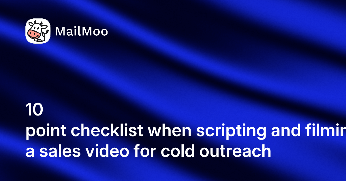 MailMoo helps you take your cold outreach to the next level by allowing you to create personalized videos with customizable audio variables and branded backgrounds. You can easily add your prospect's name and their company's logo to your video. But of course, you also need to know a few basics before starting out. Here’s a 10-point checklist to help you script, film, and produce an effective sales video that looks professional.